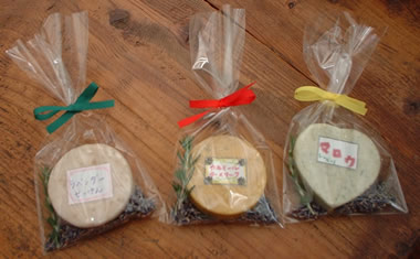 10%増量!! 30分(2〜3名)、 55g×3個 ¥1,728- (税込み) (1〜1.5時間、20〜40名の団体様用 55g×2個 ¥1,512-) ひとつの種類を3個作ることができます。 ローズマリーせっけん---------------若返り ローズゼラニウムせっけん------------美肌 |